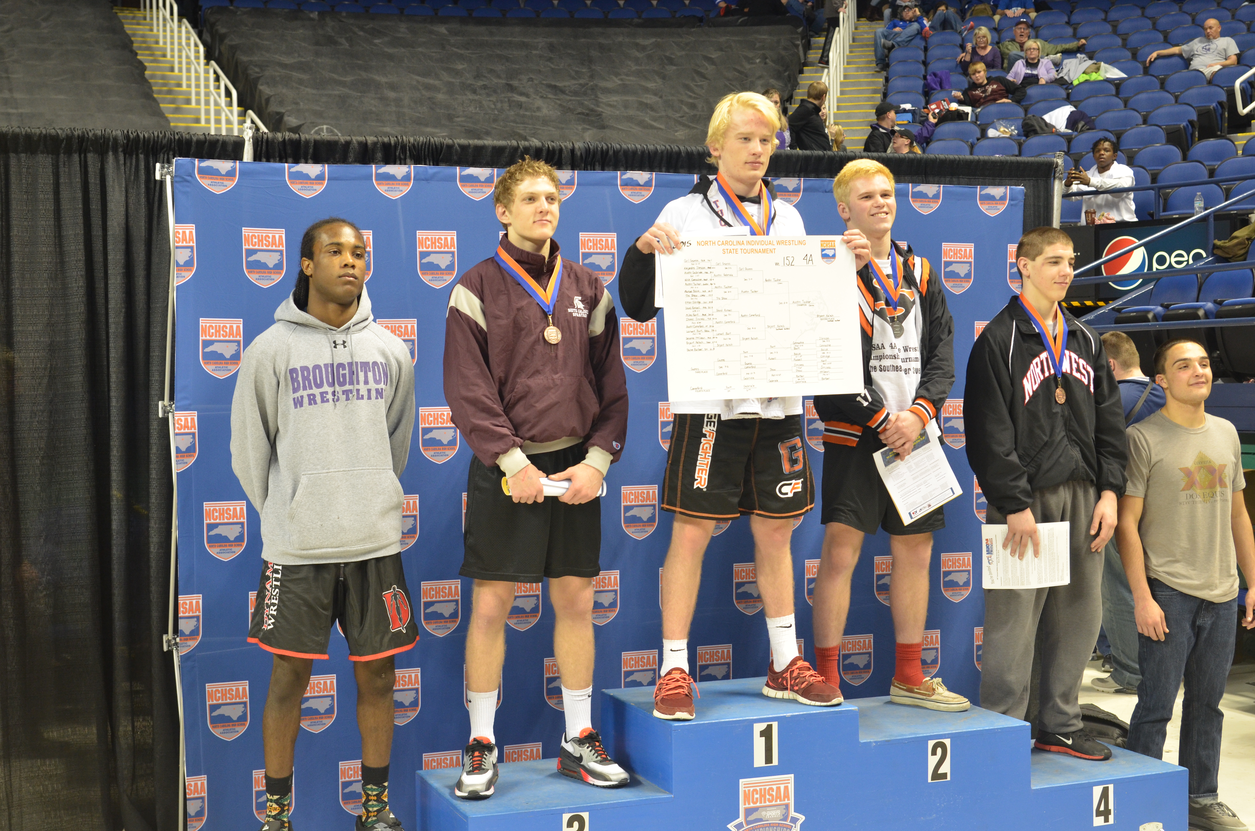 152 Lbs. 4A Champion: Austin Tucker (Glenn), 2nd, Bryant Halsch (SE Guilford), 3rd, Carl Guess (S.Caldwell), 4th, Austin Comeford (NT), 5th, Lamont Burt (Broughton), 6th, Austin Gabriele (Ashley)