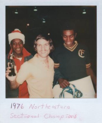 Shown below is a photo from our 1976 Sectional (Reg.) Champion team after the tournament at Rose High. James Johnson was on his way to winning DHC’s first-ever state title the next week. To my left, Jesse Davis would win a state title in ’77. The little trophy was all we got as the state wasn’t spending much on team awards! Lesson: it’s not the size of the award that counts.