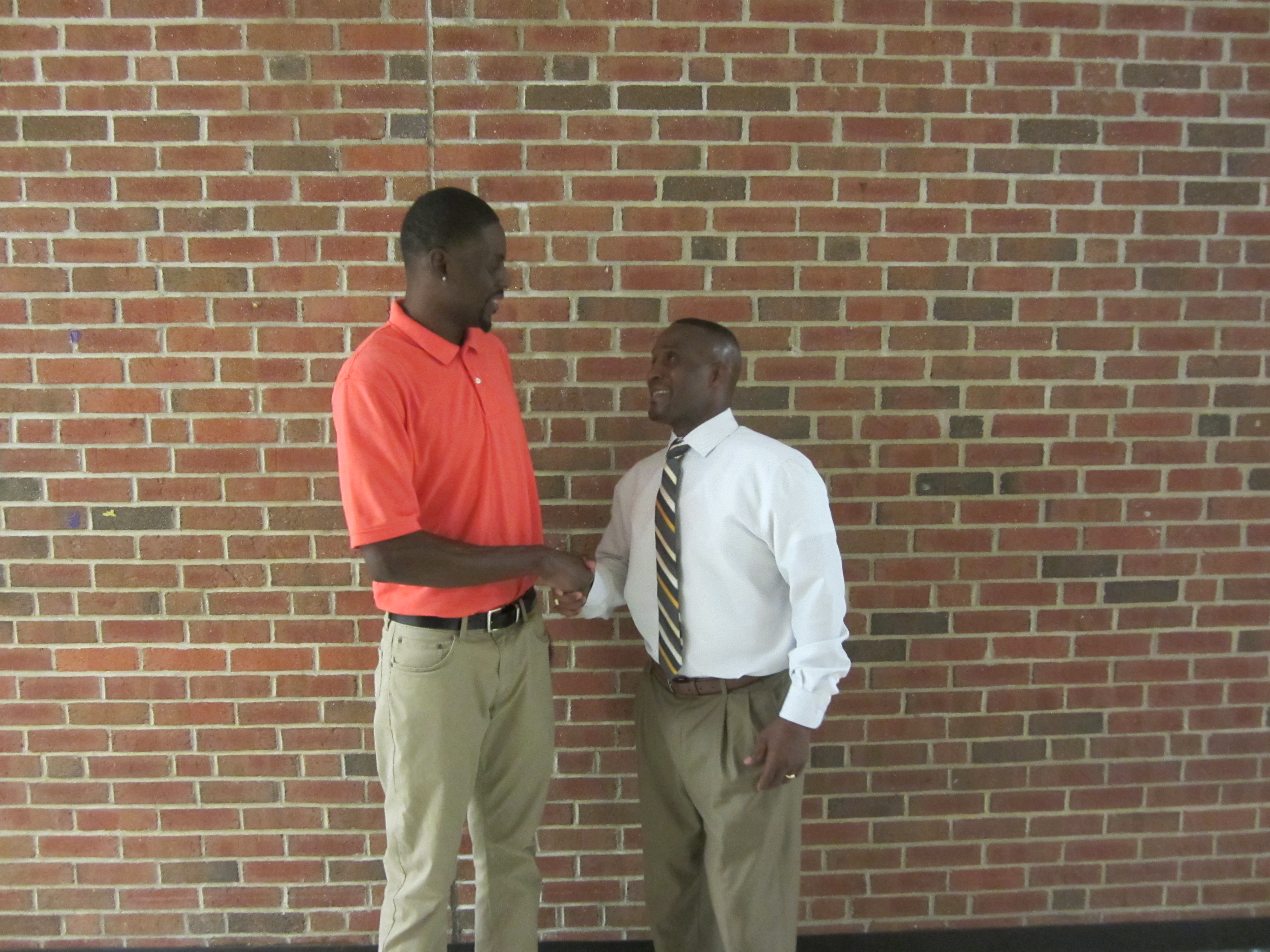 Coach Andrew Harding announced at the annual sports banquet that THS Alumi Quentin Knight will be stepping in as the next head coach. Here are pictures of Quentin with Michael Stokes.