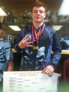 Derby scored a perfect winning record in 41 matches this season as he won his second state championship. Jeremiah was a consistent winner as he won 149 of his 162 high school matches. He has placed for First Flight High School in every tournament the he competed in for his team. He was a four time conference and four time regional champion and a four time state placer (6th-1st-2nd-1st). He credits his decision to move up to 126 lbs. this season as a key in making this his most successful season. He emphasized that “Instead of worrying about cutting weight I was able to focus on getting stronger and better. I believe this helped to give me an edge this year and to dominate my competition.” After placing 3rd and then 5th in the prestigious mid-season WRAL tournament the two previous years “… winning this year on my birthday, (December 23rd) was a special memory this season.”