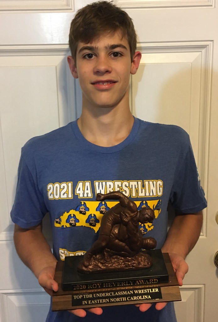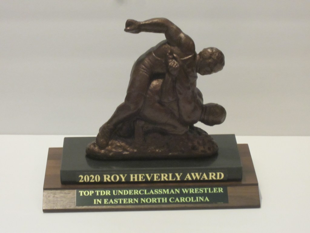 The award is named in honor of former state champion Roy Heverly, a 4 time state medalist at West Carteret and three time All-American at The University of North Carolina-Pembroke. The TakeDown Report, an on-line publication promotes amateur wrestling in eastern North Carolina, sponsors these Awards. “These awards recognize the most successful wrestlers in the area each year.” Fleming noted, “It encourages the young men from the teams in the eastern part of the state with another opportunity for others to realize the hard work, determination and discipline it takes to be a top wrestler,” he added. The TDR also ranks wrestlers in a TDR Top 12 List that is displayed on the TDR Blog page. The TDR has been involved in the publicity of amateur wrestling in North Carolina for over 20 years. Contact the TDR at martinkfleming@gmail.com, (252) 883-3311 & https://takedownreport.wordpress.com/