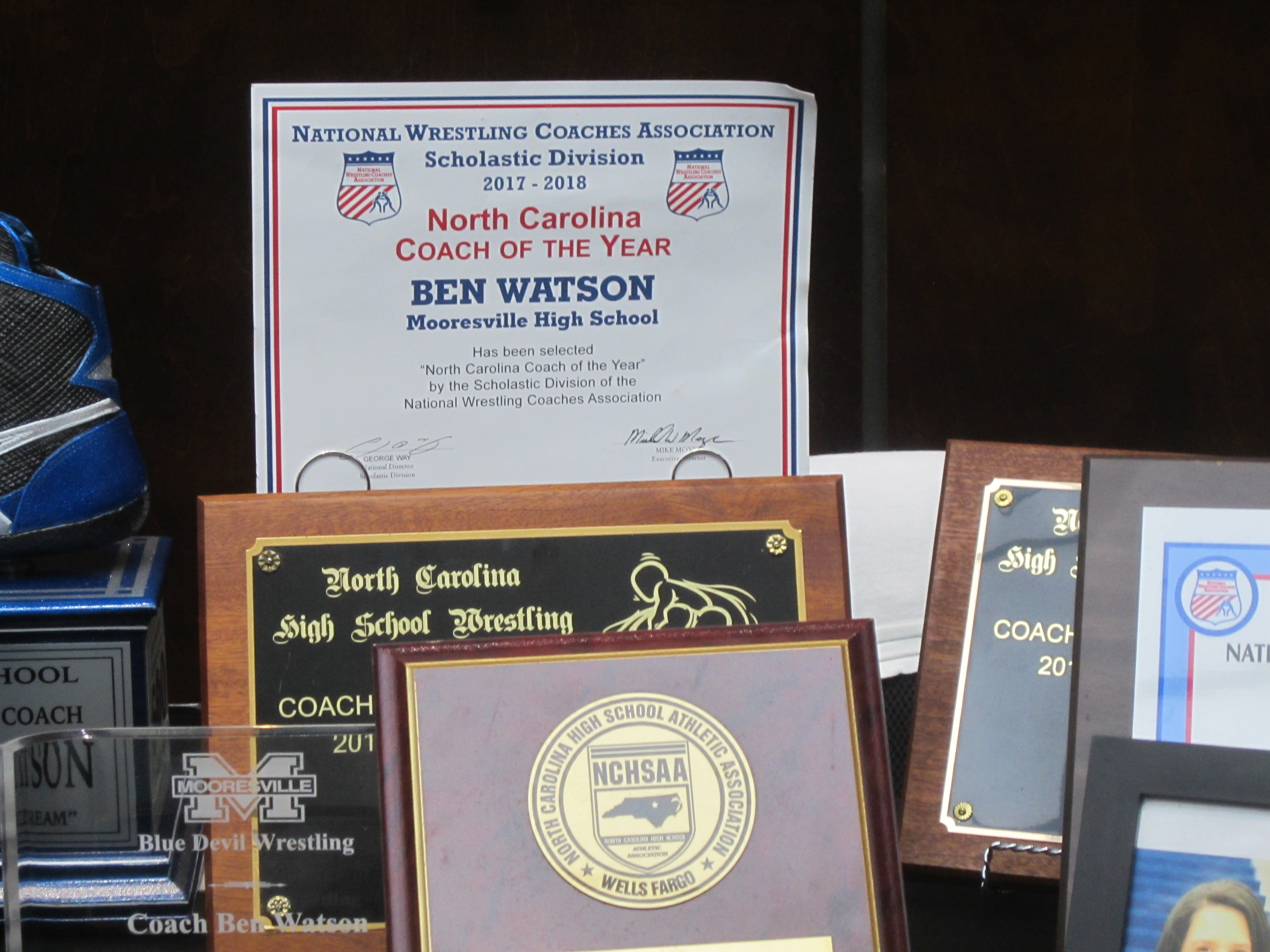 Throughout his coaching tenure, Watson has led his wrestling teams at East Mecklenburg and Mooresville to great success, including ten conference championships (2002, 2004, 2006, 2008, 2009, 2016, 2017, 2018, 2019, 2023). His teams have also won five regional championships (2016, 2017, 2018, 2019, 2023) and captured two state tournament titles (2018, 2019). Additionally, Watson’s teams reached the regional dual team finals in 2002, 2012, and 2019, and were regional tournament runners-up in 2021 and 2022.