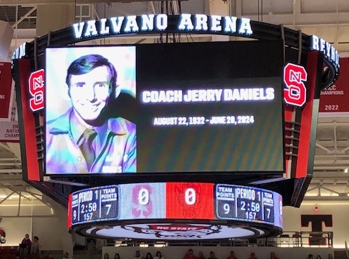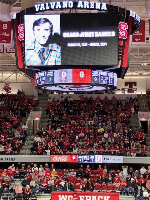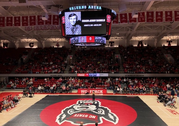 Editor’s Notes ; Earlier this month at the Stanford – N.C. State match Jerry Daniels was recognized and remembered by the wrestling fans in attendance. Jerry Barker passed along this report.